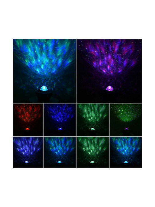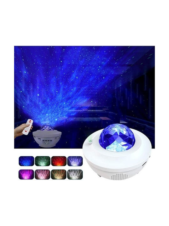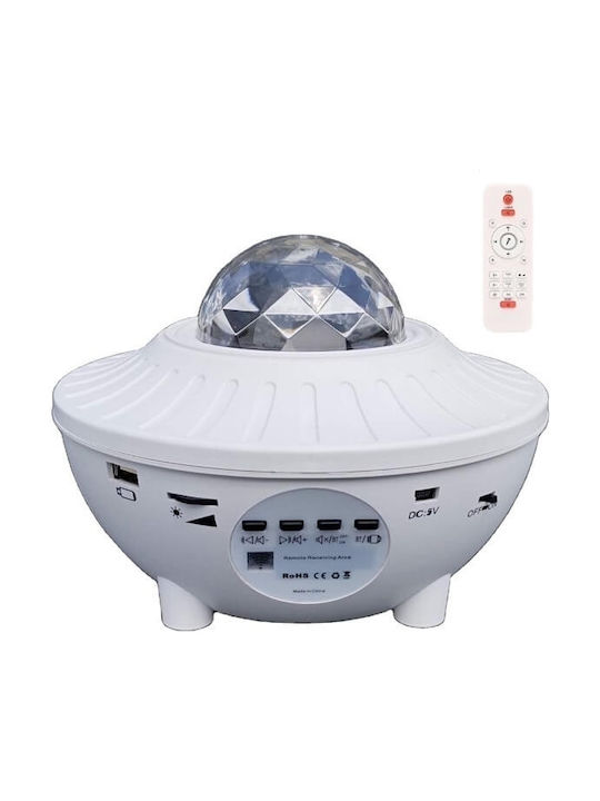 Led Περιστρεφόμενο Παιδικό Φωτιστικό Projector Galaxy Star Ocean Wave με Προβολή Αστεριών με Εναλλαγές Χρωματισμών Λευκό 13.5x13.5x10εκ.