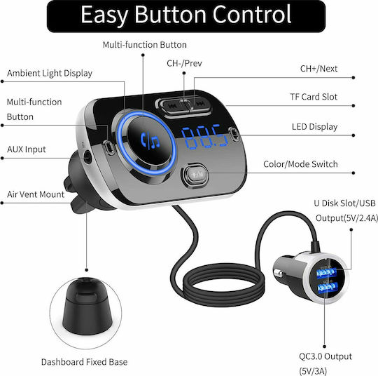 FM Transmitter Αυτοκινήτου Φορτιστής με Bluetooth / USB