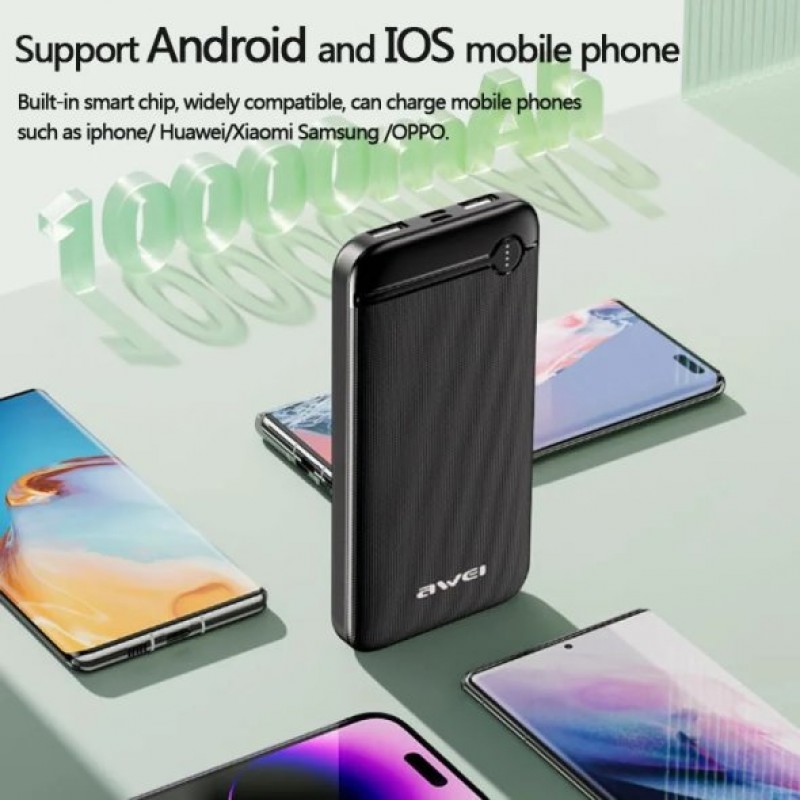Awei P82K Power Bank 10000mAh Μαύρο